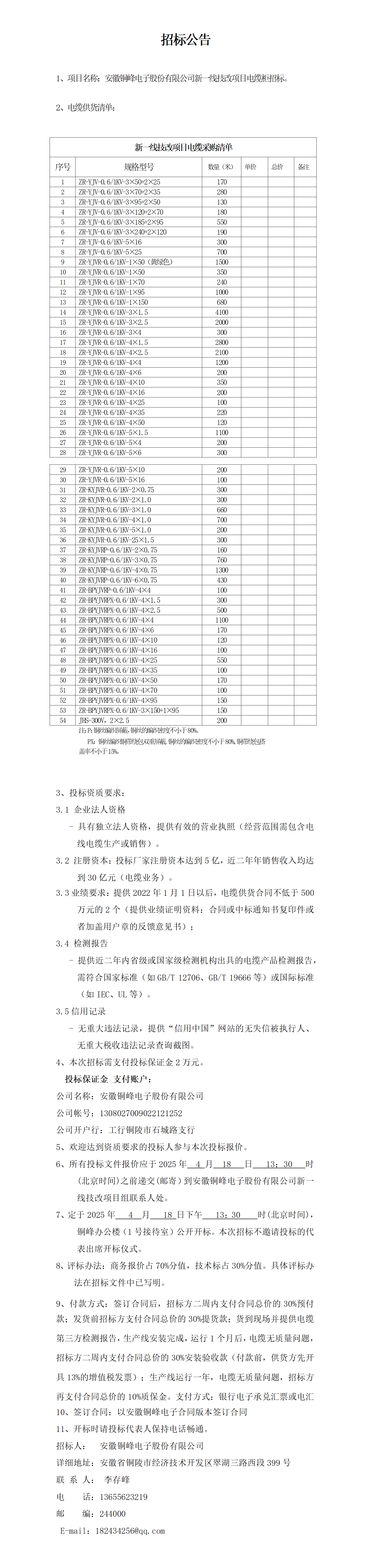 安徽銅峰電子股份有限公司新一線項目電纜招標(biāo)公告_01