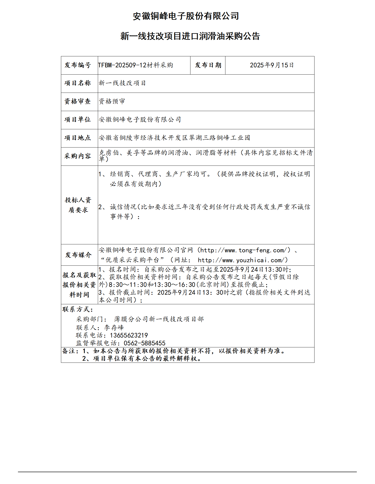 安徽銅峰電子股份有限公司 (新一線技改項(xiàng)目進(jìn)口潤(rùn)滑油采購(gòu)公告)_01