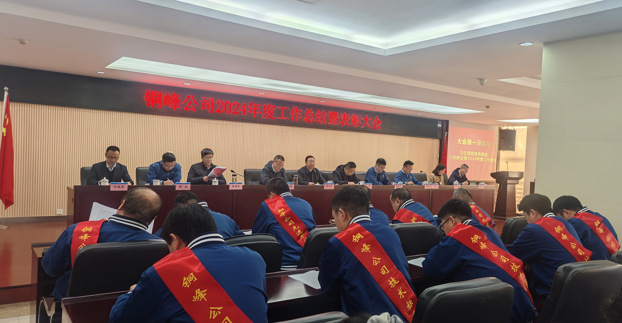1月22日,公司在辦公樓二樓職教室隆重召開2024年度工作總結(jié)暨表彰大會(huì)。銅陵經(jīng)開區(qū)黨工委委員、管委會(huì)副主任蒯正軍,銅陵大江投資控股有限公司董事長(zhǎng)劉奇,公司黨政領(lǐng)導(dǎo)班子成員,各經(jīng)營(yíng)單位與職能部門管理人員,部分職工代表、新進(jìn)大學(xué)生,以及先進(jìn)集體、先進(jìn)個(gè)人代表等參加會(huì)議。公司黨委副書記潘世宇主持會(huì)議。